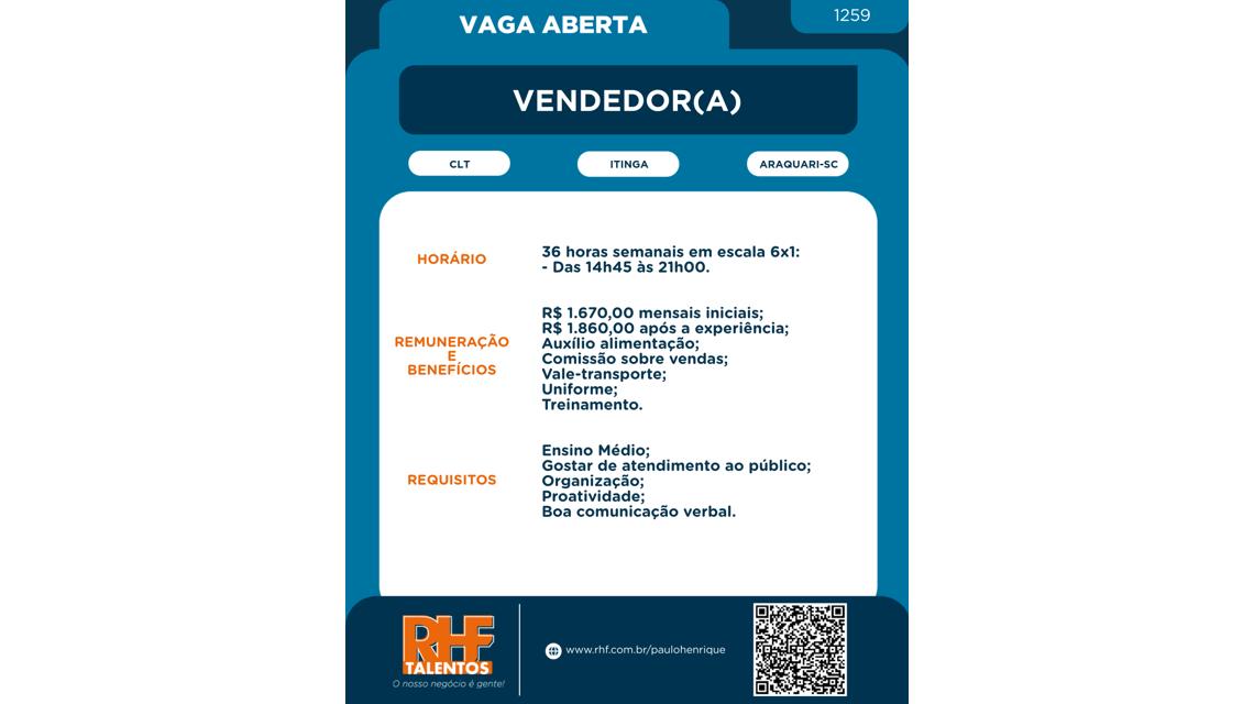 Vendedor(a) [1259] - Itinga - Araquari-SC
